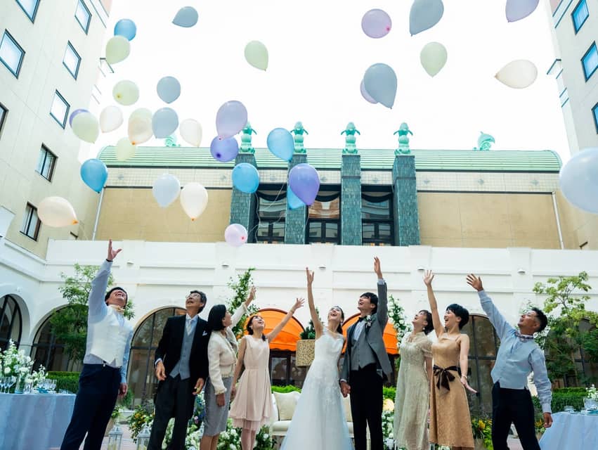 フラワーシャワーやバルーンリリース、ご友人と歓談しながらの写真撮影など、お二人と大切なゲストとのかけがえのない時間が叶います。